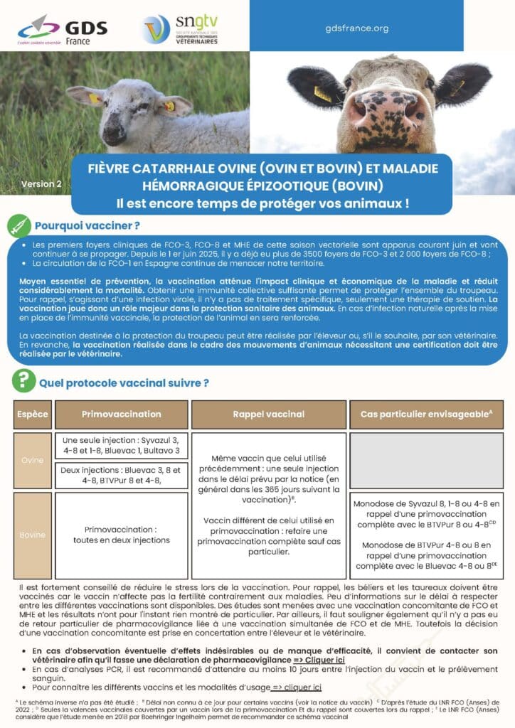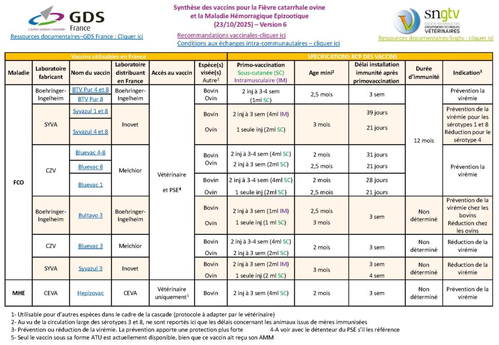 Du fait des résultats sur le terrain, le GDS 53 recommande les vaccins de la gamme de Boehringer Ingelheim : BTVPUR 4+8 et BTVPUR 8 (dose d’1 ml par voie SC) et BULTAVO 3 (dose d’1 ml par voie IM).