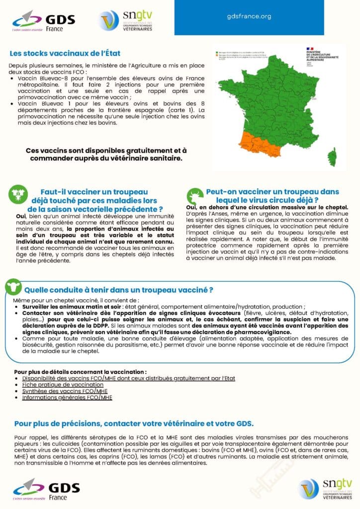 Ci-dessous la liste des vaccins et les recommandations de GDS France/SNGTV